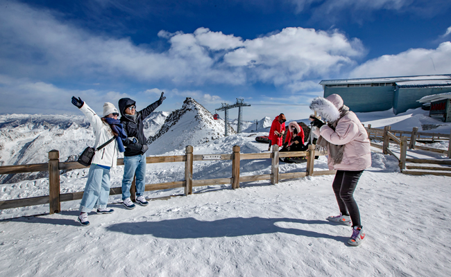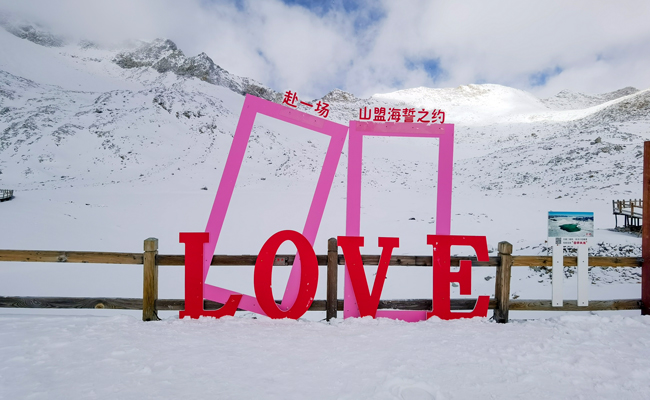 索道下站最近還新增設一面打卡墻,冰雪背景,大大的“I LOVE YOU”字眼,必須得帶對象來拍拍照。