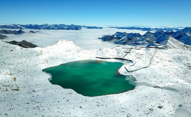 達古湖是由千年冰川融化的冰水匯聚而成。湖色隨季節而變幻。雪后的湖泊,晴天的湖泊各有魅力,青年男女在情人灘上,對著遠處的冰川許下海誓山盟。