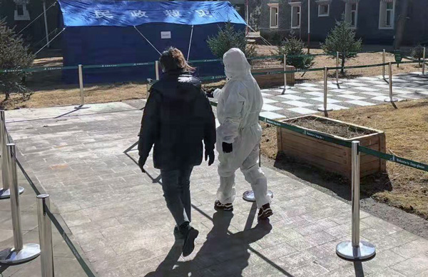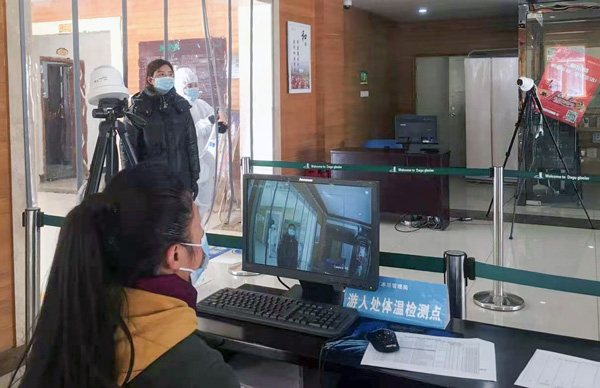 該演練為春節(jié)假日期間,陸續(xù)有游客進(jìn)入景區(qū)游覽,當(dāng)日上午10:00時(shí),工作人員在為每位游客測量體溫并登記信息時(shí),發(fā)現(xiàn)一名游客體溫異常,經(jīng)三次測定,體溫分別為37.6℃、37.5℃、37.7℃,引起工作人員警惕。工作人員馬上向景區(qū)應(yīng)急處置辦公室的主任報(bào)告,并引導(dǎo)體溫異常游客到臨時(shí)隔離點(diǎn)進(jìn)行隔離和情緒安撫,同時(shí)引導(dǎo)密切接觸游客到觀察點(diǎn)進(jìn)行隔離,及時(shí)疏導(dǎo)其他游客分流到安全區(qū)域。同時(shí)應(yīng)急處置辦公室報(bào)告縣疾控中心,并通知冰川公司和游人處暫時(shí)關(guān)閉景區(qū)停車場和游客服務(wù)中心,及時(shí)疏散游客到安全區(qū)域,機(jī)關(guān)事務(wù)中心安排人員對留置場所及“疑似患者”途經(jīng)區(qū)域進(jìn)行全面消毒處理、游人處做好游客的情緒安撫。
