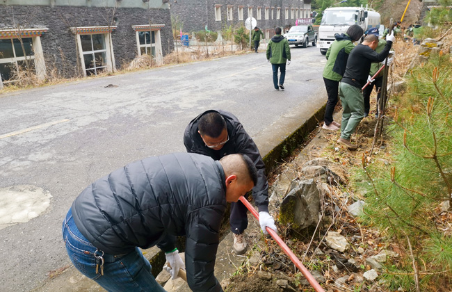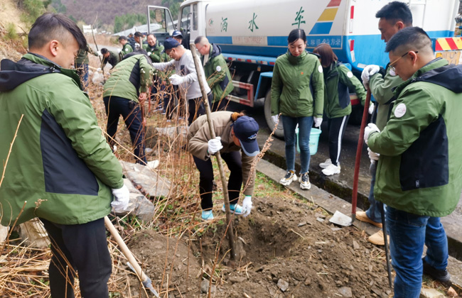 此次植樹活動由局班子成員帶隊,采取“全員參與、劃段包干、誰種植誰負責、保證成活率”的原則,因勢因地開展植樹,據統計,共組織管理局和駐景企業干部職工200余人次,在景區溝口、游人中心、生態停車場等區域種植紫槐樹苗300株;出動灑水車10臺次。