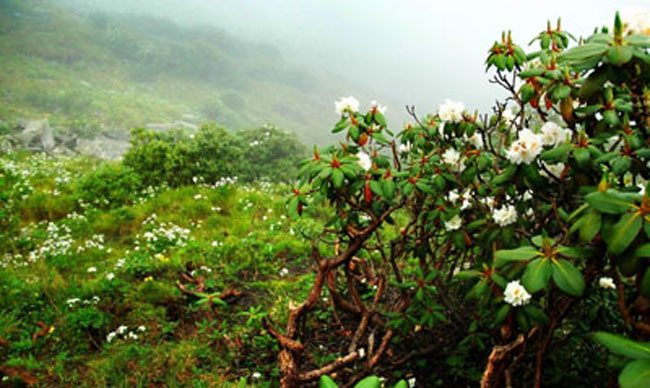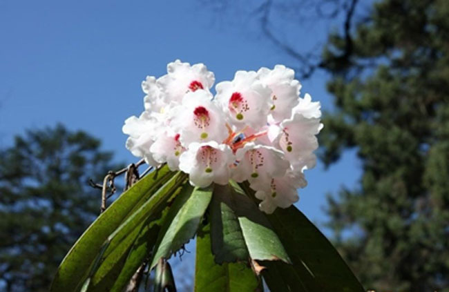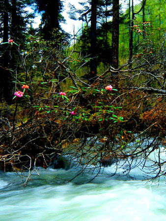 ? ? ? ? 杜鵑花,雅稱“山客”,與山茶花、仙客來、石臘紅、吊鐘海棠稱“盆花五姐妹”。系中國十大名花之一。它代表愛的喜悅,據(jù)說喜歡此花的人純真無邪。每當(dāng)見到滿山杜鵑盛開,就是愛神降臨的時(shí)候。白居易贊曰:“閑折二枝持在手,細(xì)看不似人間有,花中此物是西施,鞭蓉芍藥皆嫫母”。 詩圣李白則以一首《宣城見杜鵑花》寄托了濃烈的思鄉(xiāng)之情:“蜀國曾聞子規(guī)鳥,宣城還見杜鵑花;一叫一回腸一斷,三春三月憶三巴”。杜鵑花,在達(dá)古冰山景區(qū),有萬畝之多,分布于海拔2600米—3800米之間。當(dāng)前,景區(qū)杜鵑花遍地開放,或白、或粉,綿延數(shù)十公里,場景十分壯觀、美麗、妖嬈。