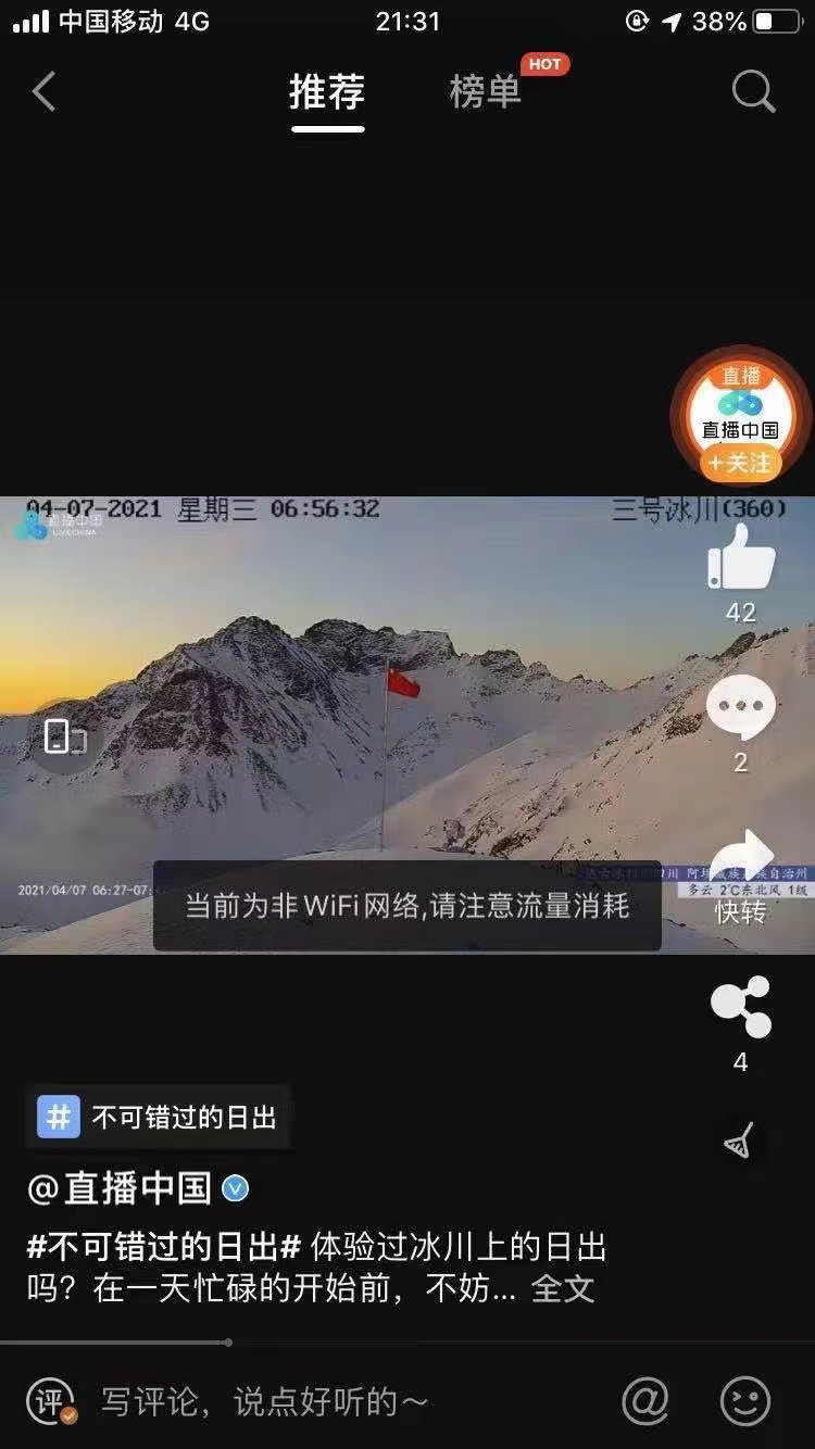 朋友們不得了啊!沒想到達古冰川從今天一大早就開始火力全開?!4月8日,網絡上#達古冰川日出#的話題直接沖上了微博熱搜榜!意料之中,畢竟海拔4860米之上的日出再配上巍峨挺拔的雪山冰川,怎一個“美”字了得!