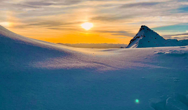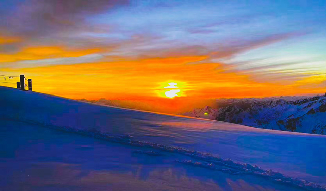 日出燦爛,四月份的雪景同樣絕美!