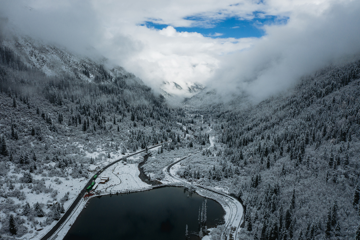 下雪這個事情,在達(dá)古冰川真是一時興起的那種,就連在春天 夏天,這里也是一言不合就下雪
