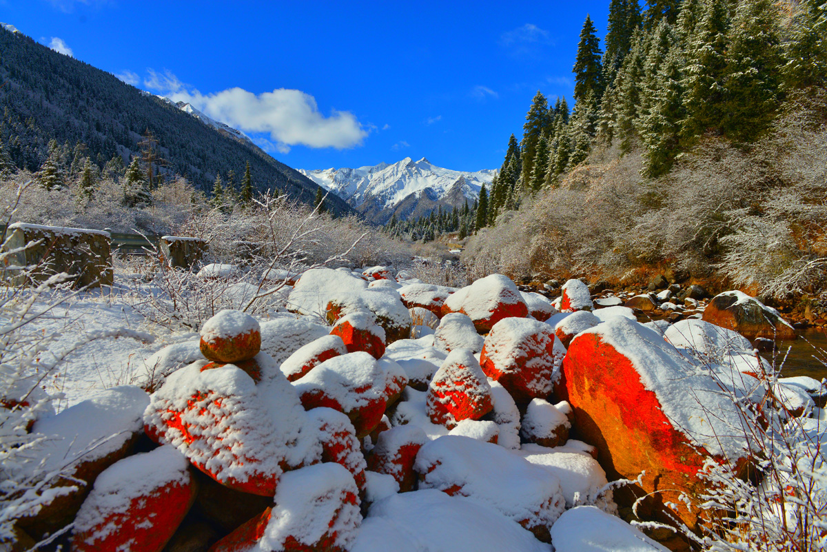 在藍天白云雪山的背景下,那抹獨特的紅被深深印刻在心里