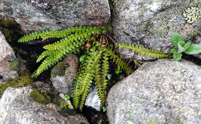近日,三打古自然保護(hù)區(qū)工作人員在一線巡護(hù)中,在海拔4200米左右的流石灘發(fā)現(xiàn)一株植物,疑似玉龍蕨,經(jīng)中國(guó)科學(xué)院昆明植物研究所專家鑒定,確認(rèn)此植物為國(guó)家一級(jí)重點(diǎn)保護(hù)珍稀瀕危植物玉龍蕨。