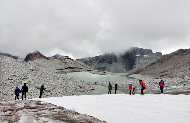 2021年8月9日,中國科學院西北生態環境資源研究院冰凍圈科學國家重點實驗室副主任王飛騰研究員帶領研究團隊,前往達古冰川17號冰川,開展應用人工措施減緩達古冰川消融試驗科考工作。