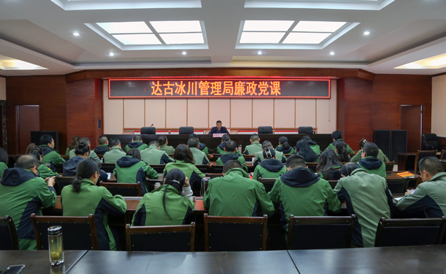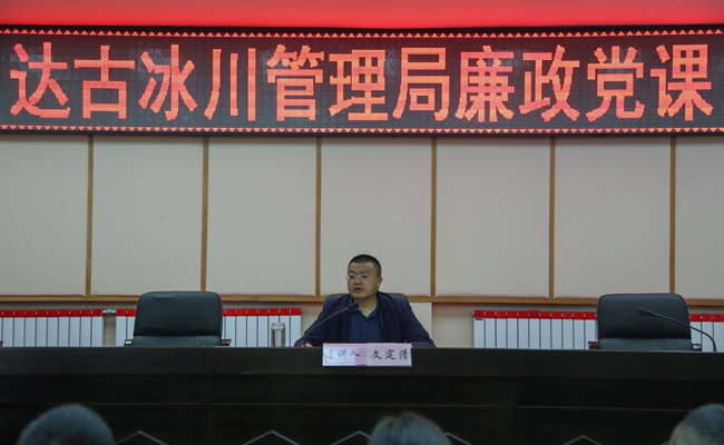 為全面加強達(dá)古冰川管理局黨員干部廉政教育,有效落實黨風(fēng)廉政建設(shè)和反腐敗工作的主體責(zé)任,扎實推進(jìn)全局黨風(fēng)廉政建設(shè)和反腐敗各項工作。9月3日,達(dá)古冰川管理局開展主要負(fù)責(zé)人講授廉政專題黨課活動,局黨委委員、局長文定清以《百年風(fēng)華 廉心向黨》為主題,為全局40余名黨員干部進(jìn)行專題授課。