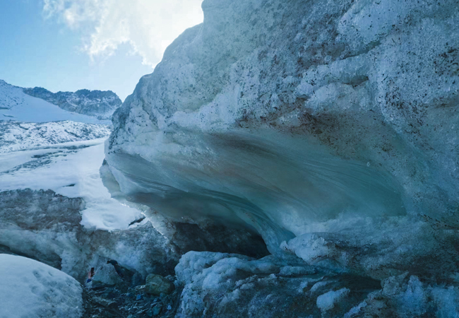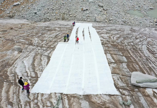 本次考察發現,經過一年的時間,“蓋被子”區域的冰體消融速度明顯減少,與未覆蓋區域的冰體相比,能夠減緩冰川消融厚度達到1.5米。此外,今年8月份,新型納米材料鋪設于達古冰川,其試驗效果更為顯著,初步估計能夠減緩80%左右的冰川消融。