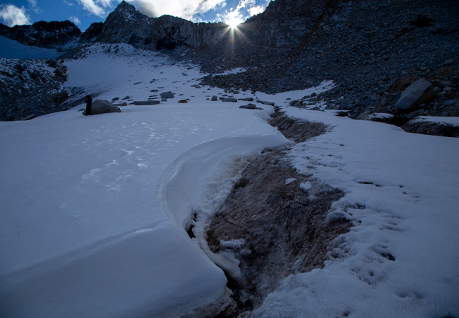 自2020年8月份以來,王飛騰研究員已經是第6次率領團隊來到達古冰川。王飛騰研究員說:“冰川是西部水資源的重要來源,近年來在全球變暖的背景下,冰川急劇消融,對水安全和下游的生態環境帶來了很大的影響。”而且研究發現,過去的50余年時間,達古冰川的面積縮減了70%,已經嚴重影響當地生態文明建設,限制了冰川旅游事業的發展,因此應用人工手段減緩冰川消融尤為迫切。