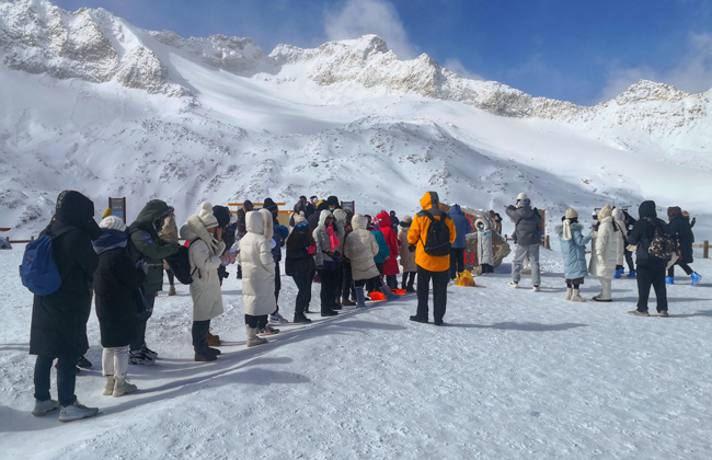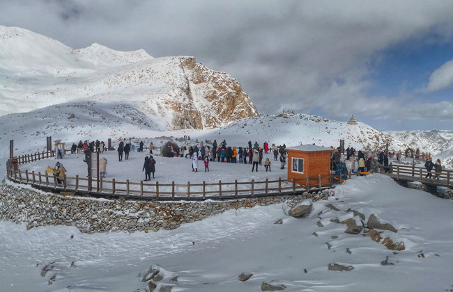 除了新年祈福,景區(qū)還是一片天然的玩雪場。在4860雪山之巔,游客們滑雪、滑冰、打雪仗、堆雪人......玩得不亦樂乎!