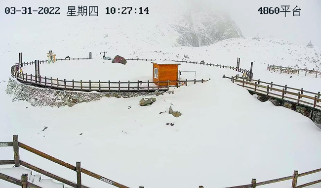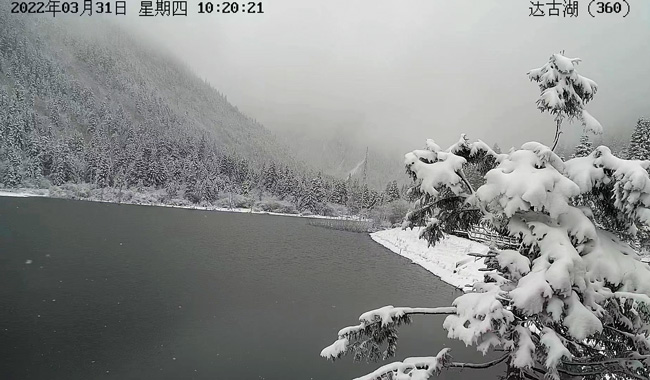 入春不久,達古冰川降下多場春雪,春日的雪花一路踏歌而來,帶著千般嫵媚萬種風情,裝扮著景區初露紅裝的早春。