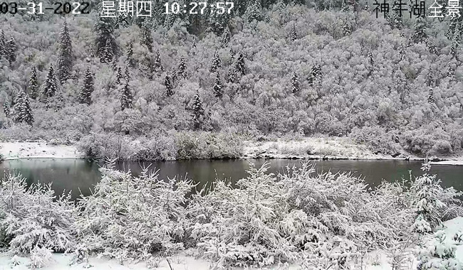 春雪如約而至,達古冰川景區內也愈發春意盎然,到處都是生機勃勃的樣子。