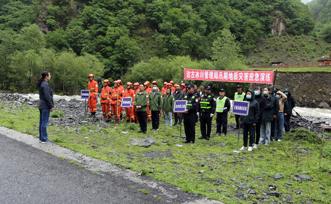 為全面貫徹落實習近平總書記關于防災減災救災系列重要論述,堅持“人民至上、生命至上”的理念,嚴格落實安全生產“十五條硬措施”,5月27日,達古冰川管理局聯合冰川公司、景區派出所開展了2022年防汛及地質災害應急演練。