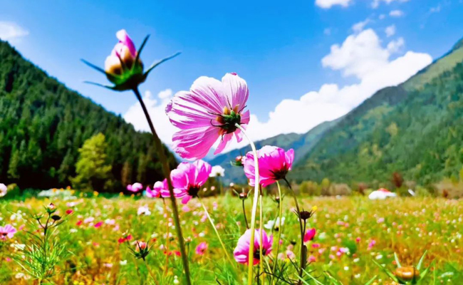 景區(qū)內(nèi),熱情綻放的百畝花圃,格桑花、向日葵、杜鵑......美得耀眼。雪山上,一片白雪皚皚,有足夠的雪供你們打雪仗、堆雪人,想要體驗在4860米的雪山上滑雪的刺激感千萬不要錯過。