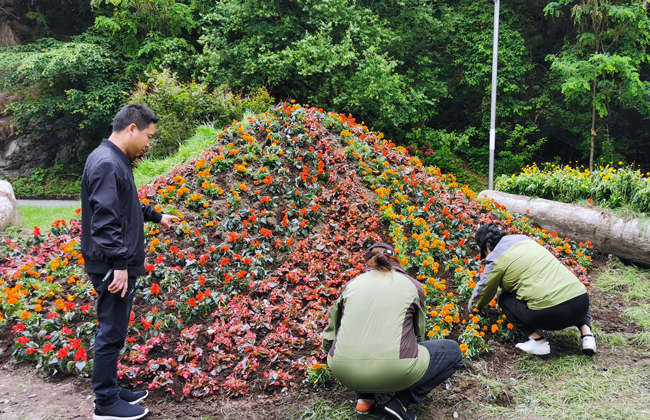 目前已完成游客中心、溝口馬橋、管理中心等點位建設10余個,栽植了四季海棠、松果菊、多肉老樁、一串紅等各類花卉1000余株,紅楓100余株。(接待處)
