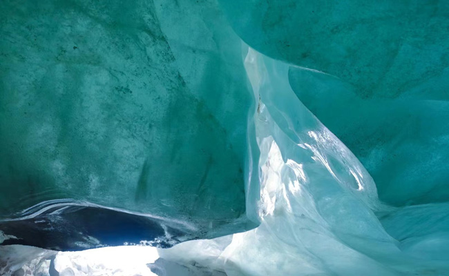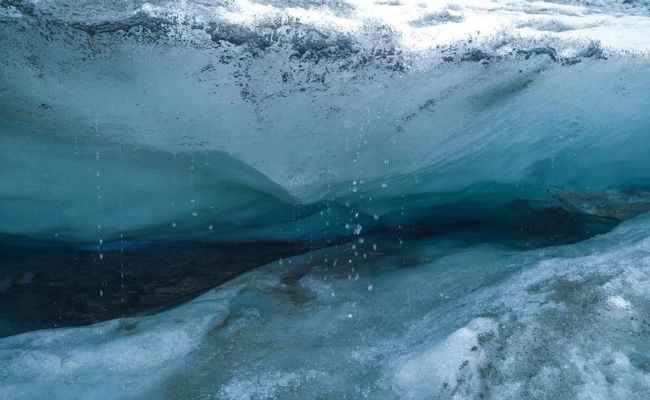 隨著冰雪融化,逐漸露出了真容的超炫酷藍色冰川正等你來打卡。