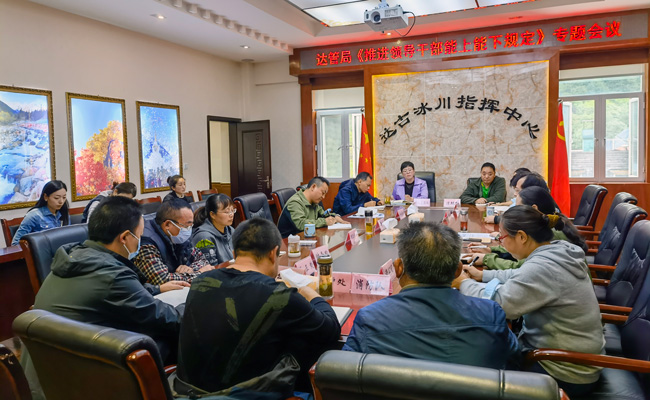 2022年10月4日,達古冰川管理局黨委召開專題會議,深入學習《推進領導干部能上能下規定》精神。局黨委書記唐華祥領學《推進領導干部能上能下規定》,傳達中組部負責人答記者問、州委劉坪書記在州委常委學習貫徹《推進領導干部能上能下規定》重要講話精神。