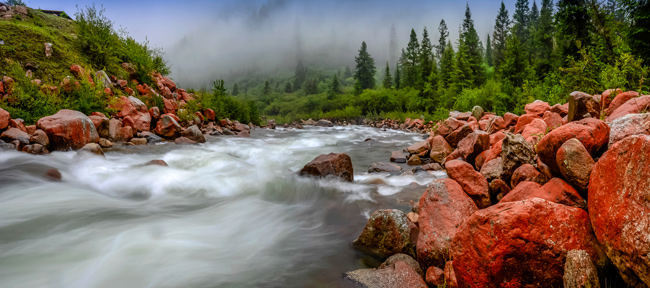 達古冰川的原始森林保護完好,原始氣息濃郁。夏季來臨,低山區褪去了被白雪包裹的銀色,換上翠綠的新衣。景區內,各種樹木高聳挺拔,樹葉層層疊疊、遮天蔽日,穿行于林間,使人頓生神秘、幽靜之感。數十畝的原始森林,讓空氣中的負氧離子含量極高,使得達古冰川成了夏季的避暑天堂,成為廣大游客養心養肺之旅的首選之地。