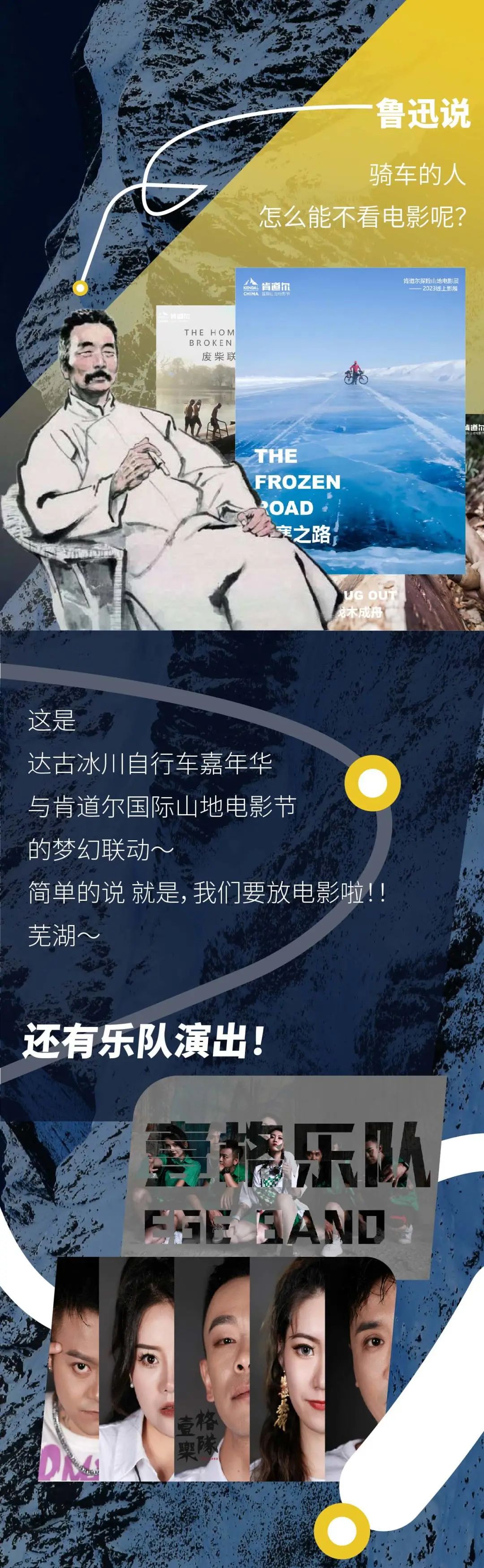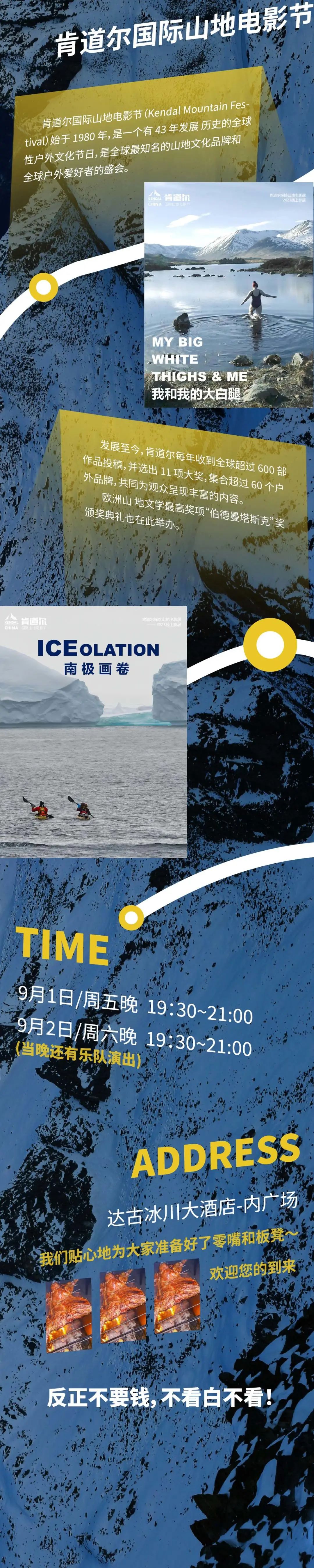 達古的晚上怎么可以沒有篝火晚會和電影?今年自行車嘉年華的重頭戲之一,就是與國際知名戶外電影節—肯道爾國際山地電影節合作,9月1日-2日,連續兩晚我們都會達古冰川大酒店的后院進行肯道爾山地電影紀錄片放映、騎行大咖分享會、肯道爾戶外嘉年華、戶外探險攝影展,以及戶外體驗教育活動等。