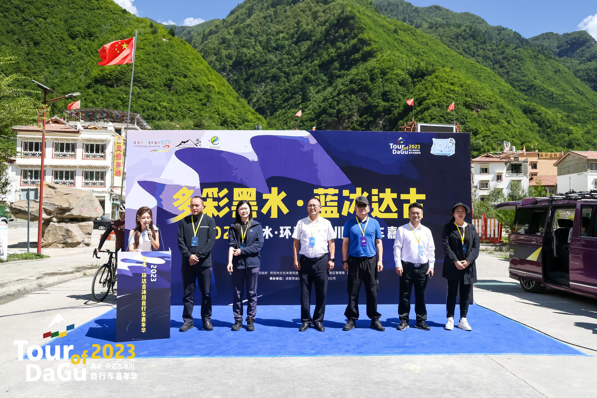 今天進行的是第一賽段“穿越奶子溝”的比賽。黑水縣委常委、縣政府常務副縣長斯旦波出席并致辭,斯縣長表示,自行車運動與低碳環保不謀而合,與長征精神相向而行,在黑水縣舉辦的“環達古冰川”賽事更是“綠水青山就是金山銀山”的踐行和落實。隨后在場主要領導和嘉賓一同為比賽鳴槍。