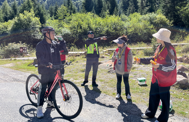 在比賽途經路段,志愿者們分工協作,分站點堅守,依托景區管護站實現熱水食物等補給全覆蓋、結合賽組賽程道路陡坡實際情況提供賽道指引全覆蓋、依靠景區管護站工作人員對賽程全線開展安全巡護全覆蓋”三全程”服務,當好了動態保潔員、安全員、服務員、后勤員“四員”。充分展示青年一代良好的精神風貌和志愿風采,圓滿完成各項志愿服務工作,給參賽運動員帶來了暖心的志愿服務。