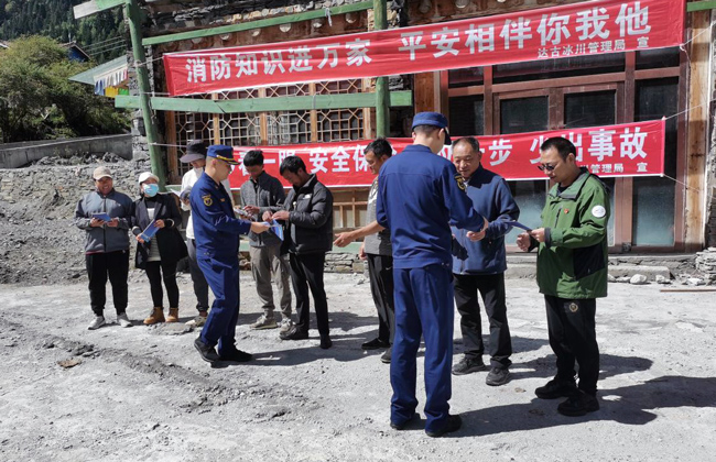 為確保“州慶”景區安全生產、森林草原防滅火、消防安全,汲取金陽“8.21”山洪災害教訓,切實保護好景區居民及各景點游客安全工作,提升景區居民及游客安全意識和防護能力,9月13日,消防隊聯合縣消防救援大隊、法規處(局安辦)、保護處走進景區村寨、景點宣傳地質災害、森林草原防滅火、消防安全等知識。