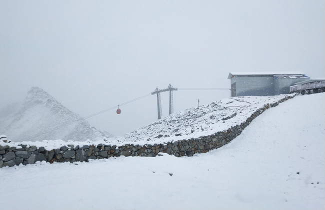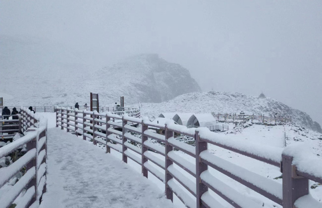 10月6日,達古冰川4860雪山之巔再次迎來一場氣勢磅礴的降雪,霎時間,整個4860觀景平臺銀裝素裹,漫山遍野被白雪覆蓋,這樣的場景讓人心無雜念,沉醉其間。不知雪花是如何用單純的色彩,畫出這般冷冽絕美如仙境的風景畫的,唯有身臨其境,方知自然造化絕。