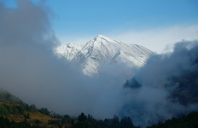 山頂雪花飄飄,山下彩林綻放。進入10月,天氣開始逐漸轉涼,達古冰川群山的色調也在悄然的發生著變化。因極大的海拔落差,景區彩林從每年10月開始,隨著海拔由高到低漸次顯現,將一直持續到11月左右。常言道,“最美彩林在黑水,不入達古憾終身。”達古冰川是黑水彩林的核心觀賞區,彩林面積高達1000余平方公里。只要見過達古的彩林,其他地方都會成為“將就”。