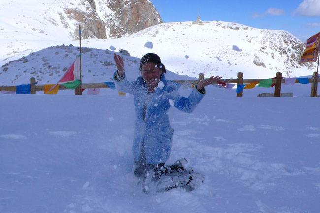 當然,你還可以乘上全球海拔最高的客運觀光索道,來到海拔4860米的索道上站,玩雪、嬉戲。身處冰山之巔,儼然置身于一處冰雪世界,在冰山頂上打雪仗、堆雪人,可謂暮春初夏的一大樂事。