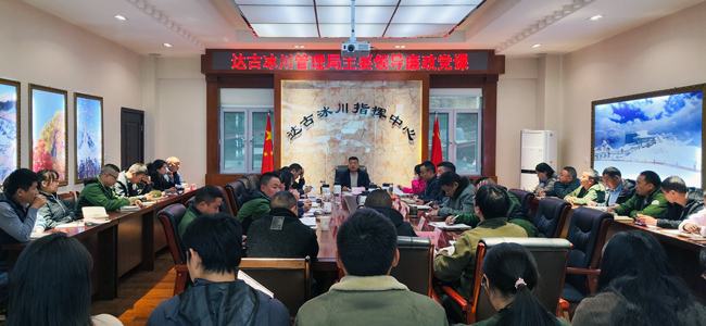 為深入推進黨風廉政建設和反腐敗工作,切實履行黨風廉政建設主體責任,強化干部職工廉政教育,11月8日下午,達古冰川管理局黨委書記、局長文定清為全局干部職工講授了一堂題目為《清似秋葉何妨瘦 廉如冰川不畏寒 努力營造風清氣正政治生態和良好發展環境》的廉政黨課。