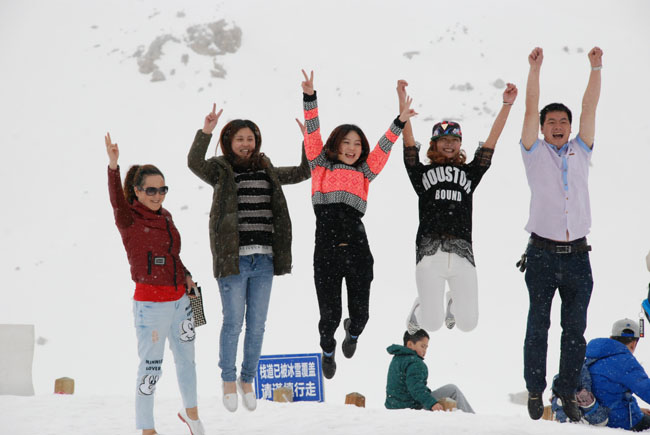 5月1日至3日,達古冰山雖不全是晴空萬里,但游客們游玩的興致并未絲毫減弱,特別是在海拔4860之巔的冰山腹地——一號冰川觀景臺,覆蓋著深達一米的積雪,游客們毫不畏懼寒冷,在雪地里盡情狂歡,一兩個小時仍不舍得離開。在游覽途中途徑金絲猴保護區(qū)域偶遇了四只金絲猴,來自成都的劉先生難以掩飾內心的喜悅,他說:“達古冰山之行樂趣無窮,不僅是抓住春天的尾巴來了一次冰雪狂歡,更幸運的是遇見了野生金絲猴,今年的運氣一定好”。