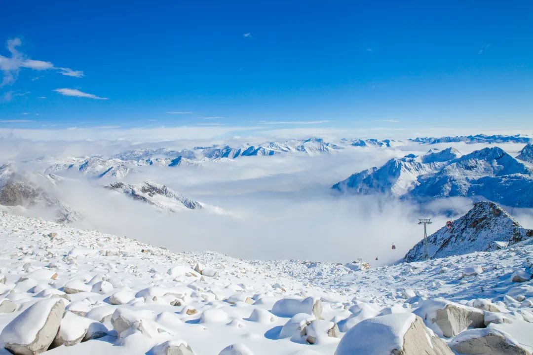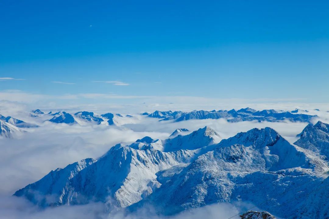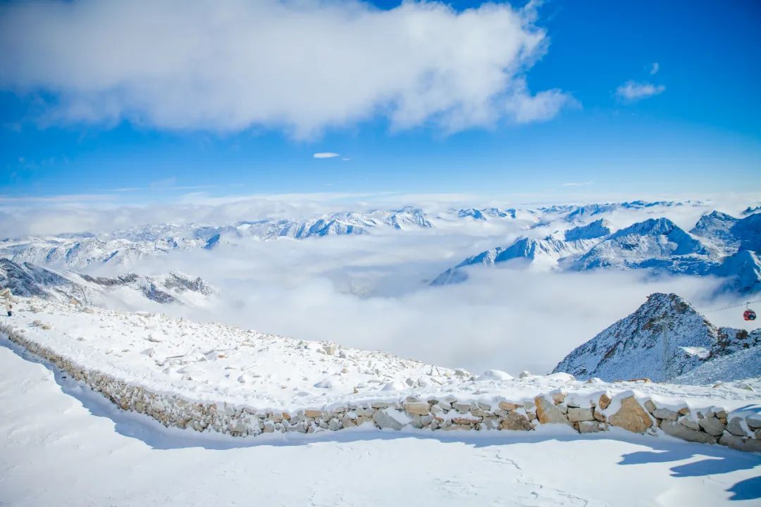 達古冰川的藍天白云是常態,在陽光的照耀下,冰川雪山顯得更加壯麗,讓人感到無比舒適和寧靜。