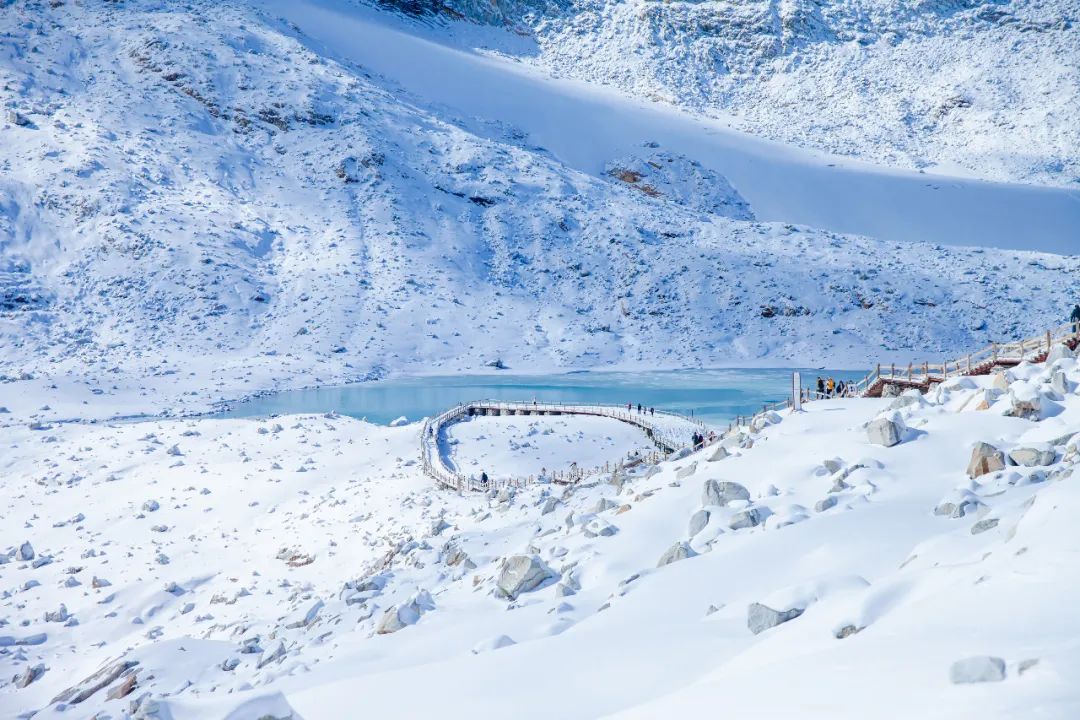 漫步在達古冰川的雪地上,感受著雪花輕輕落在臉上的喜悅,仿佛進入了一個遠離塵世的境界。