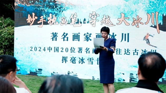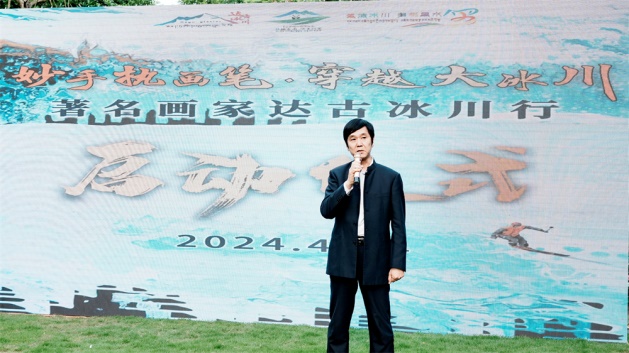 2024年4月24日下午,“妙手執(zhí)畫筆·穿越大冰川——著名畫家畫冰川活動”在成都濃園國際藝術村躍美術館林躍藝術花園成功啟動。活動由四川省文聯(lián)、四川省美術家協(xié)會作為指導單位,黑水縣人民政府、達古冰川風景名勝區(qū)管理局主辦,成都優(yōu)芮文化傳播有限公司、黑水縣文化體育和旅游局和阿壩大九旅集團大冰川公司承辦。