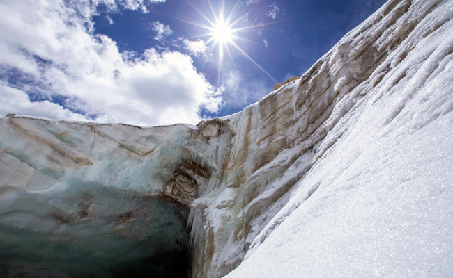 雖然時至初夏,但達古冰川卻依然是銀裝素裹、白雪皚皚的景象。“五一”小長假期間,春雪連續三天造訪達古冰川景區,漫天春雪紛紛揚揚,為達古冰川增添柔美與浪漫氛圍。恰逢高山杜鵑開放,山野間滿目的杜鵑在白雪的映襯下更顯嬌艷。