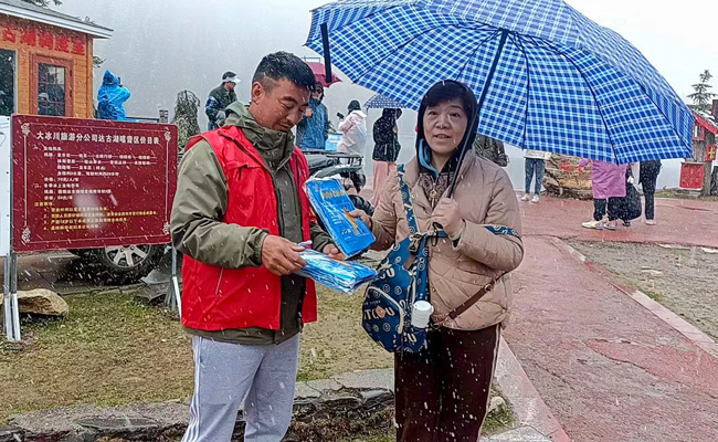 同時,黨群志愿服務人員為游客提供免費熱水、贈送雨衣等暖心服務,給四方游客營造了秩序優良、環境優美、服務優質、人人滿意的旅游環境。據統計,假日期間為游客提供旅游咨詢、講解、疏導等2000余人次;免費提供熱水1000余人次,免費贈送雨衣500余件;幫助游客找回手機、錢包、身份證等物件10余件;回收打火機180余個;及時勸誡游客吸煙行為320余次。