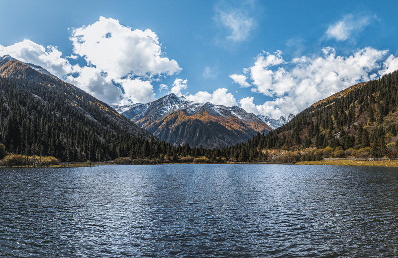 而達古冰川正位于黑水彩林的核心觀賞區,光影從六十里洋洋灑灑的彩林掠過,漫山遍野,層林盡染。景區內楓樹、樺樹、鵝掌楸、落葉松、三顆針等樹木品類繁多,隨著海拔高低漸次經霜,赭黃、金黃、墨綠、淺藍、暗紅……各種顏色混在一起,堪稱“人間絕色”,非常值得用相機記錄下來。