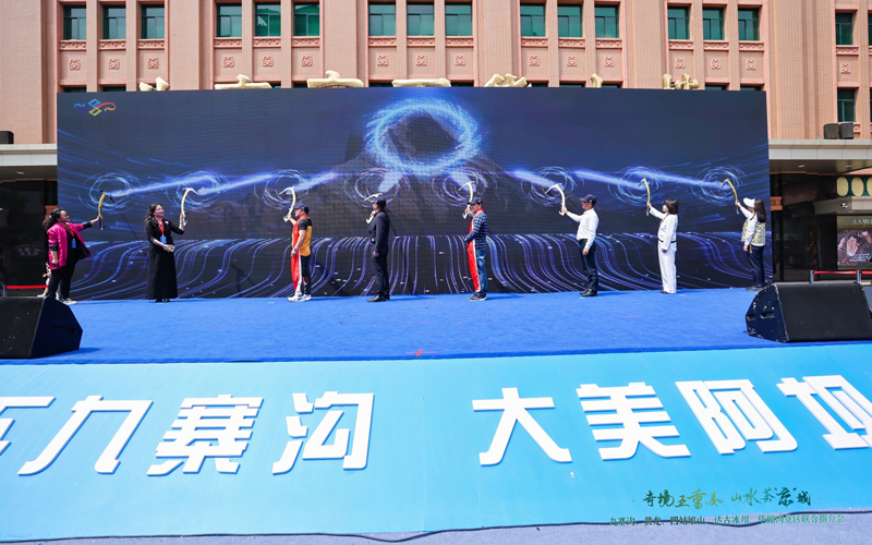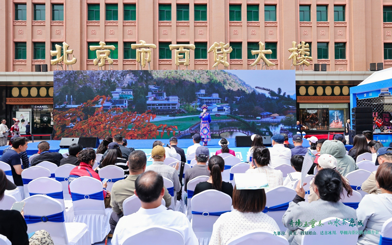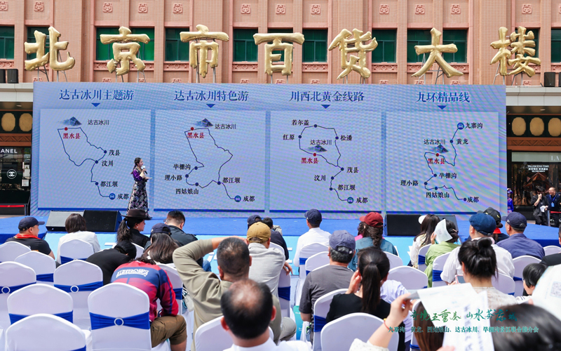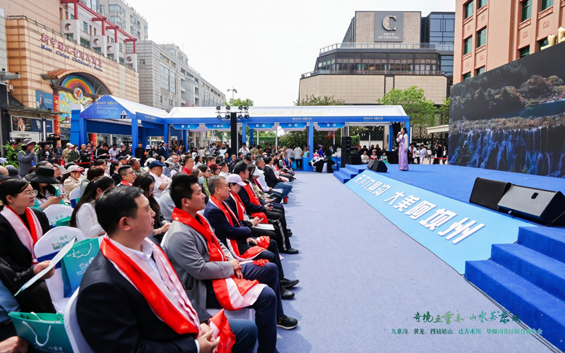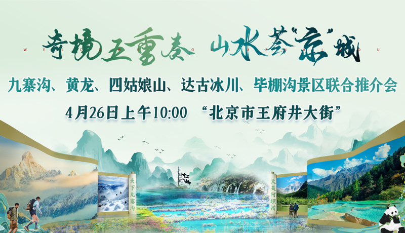 4月26日,“天下九寨溝 大美阿壩州”“奇境五重奏 山水薈‘京’城”——九寨溝、黃龍、四姑娘山、達古冰川、畢棚溝景區聯合推介會在北京市王府井大街舉行。阿壩州、北京兩地文旅系統的嘉賓、旅行社、文旅企業代表,以及新聞媒體和市民朋友等參加活動。