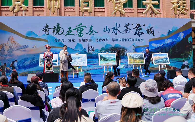 在推介會現場,阿壩州九寨溝、黃龍、四姑娘山、達古冰川、畢棚溝五大景區以“奇境五重奏”之名,共譜一曲震撼人心的生態交響。九寨溝以“水之絕”冠絕天下,黃龍憑“色之絕”驚艷寰宇,四姑娘山以“峰之絕”傲立云端,達古冰川攜“時之絕”穿越億年,畢棚溝以“境之絕”藏匿秘境。五大景區各展風華,將阿壩州“水、色、峰、時、境”巧妙融合,凝練成如地球心跳般的壯美和弦,徐徐鋪展成一幅“天人共舞”的生態長卷,生動展現了阿壩州自然與人文和諧共生的美好景象。