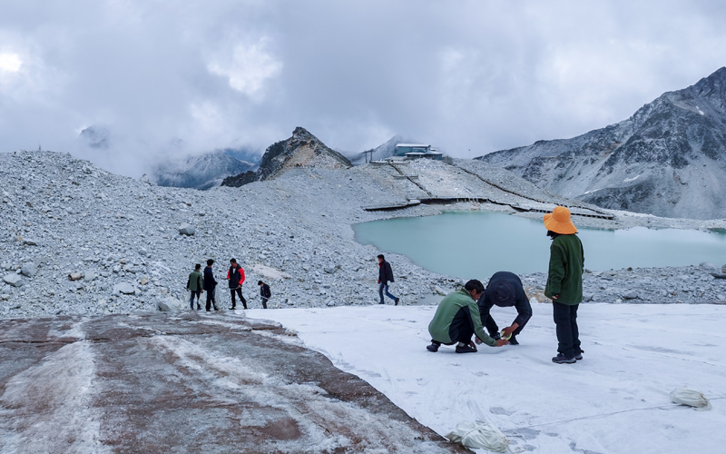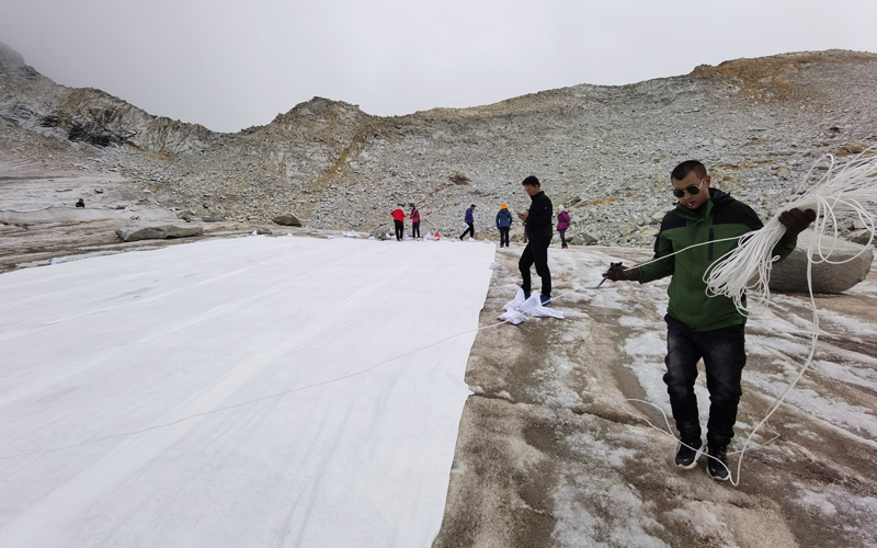 早在2019年,達(dá)古冰川便與中國(guó)科學(xué)院西北生態(tài)環(huán)境資源研究院建立戰(zhàn)略合作關(guān)系,圍繞冰川動(dòng)態(tài)監(jiān)測(cè)、資源保護(hù)與旅游可持續(xù)開發(fā)等方向,形成產(chǎn)學(xué)研一體化合作機(jī)制。2020年,景區(qū)首創(chuàng)實(shí)施“冰川蓋被子”地球工程學(xué)技術(shù),顯著減緩冰川消融速率,并不斷迭代升級(jí)保護(hù)方式。新一代輻射制冷材料的應(yīng)用,使覆蓋面積達(dá)2900平方米,保護(hù)層厚度由1米提升至2.3米,研究成果發(fā)表在10余篇學(xué)術(shù)論文和一部專著中,奠定了國(guó)內(nèi)冰川工程保護(hù)的基礎(chǔ)樣板。