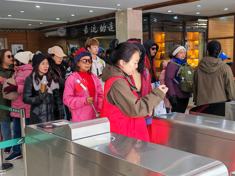 始終堅持把游客“當客人、當親人、當貴人”。假日期間,景區動態監測客流信息,依托多個平臺實時發布門票售賣、游客流量信息,引導游客科學規劃行程;游客中心合理設置景區票種,增辟線下售、檢票通道7個;冰川公司根據每天客流量動態調整觀光車,確保游客快速入園;局、司291名干部職工組成16個服務保障小組,下沉一線,身著“紅馬甲”在景區游客中心、主要景點全方位、全時段動態開展管理員、安全員、服務員、宣傳員、環衛員、監督員“六大員”暖心服務。期間,為游客提供開水1000余人次,開展景區咨詢服務、安全提醒、宣傳講解等志愿服務3000余人次;幫助游客找回手機、錢包、身份證等物件10件;及時勸誡游客吸煙行為320余次。