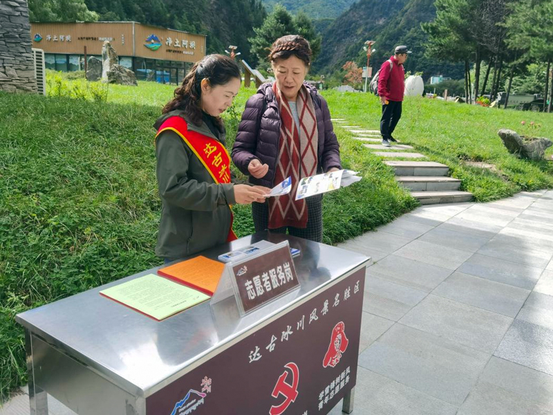 活動(dòng)緊扣“強(qiáng)化服務(wù)意識(shí)、踐行生態(tài)文明、錘煉黨性修養(yǎng)、營(yíng)造文明氛圍”四大目標(biāo),設(shè)立3個(gè)黨員先鋒崗,分組同步開展志愿咨詢、義務(wù)講解和環(huán)境整治工作。一是開展“暖心服務(wù)·暢游達(dá)古”旅游咨詢志愿服務(wù)。在游客中心廣場(chǎng)設(shè)立黨員志愿服務(wù)咨詢臺(tái),選派2名熟悉業(yè)務(wù)的黨員為游客提供線路規(guī)劃、景點(diǎn)介紹、設(shè)施指引等服務(wù),解答游客關(guān)于門票、天氣、交通等方面的疑問,協(xié)助游客處理簡(jiǎn)單的現(xiàn)場(chǎng)訴求,溫馨提醒游客入園安全注意事項(xiàng),發(fā)放文明旅游宣傳資料,切實(shí)提升游客體驗(yàn)和滿意度,從而展現(xiàn)出管理局干部職工把游客“當(dāng)客人、當(dāng)親人、當(dāng)貴人”的服務(wù)形象。二是開展“深度解讀·魅力達(dá)古”生態(tài)文化義務(wù)講解。選派2名熟悉景區(qū)景點(diǎn)和景區(qū)資源的黨員在冰川博物館開展流動(dòng)講解服務(wù),主要協(xié)助游客VR沉浸體驗(yàn),向游客介紹達(dá)古冰川的地質(zhì)演化、生態(tài)系統(tǒng)、生物多樣性等知識(shí);引領(lǐng)游客觀看景區(qū)宣傳視頻,講解景區(qū)保護(hù)管理規(guī)定,進(jìn)一步增強(qiáng)游客的環(huán)保意識(shí);與游客互動(dòng),解答關(guān)于冰川景觀、歷史文化、紅色文化等方面的疑問。三是開展“潔美家園·純凈達(dá)古”環(huán)境清理實(shí)踐行動(dòng)。組織9名黨員對(duì)馬橋至檢查站靠山邊一側(cè)進(jìn)行環(huán)境清理,主要開展修剪雜枝、清除雜草,并及時(shí)向所在區(qū)域的管理處室提出改進(jìn)建議,以實(shí)際行動(dòng)守護(hù)景區(qū)環(huán)境。