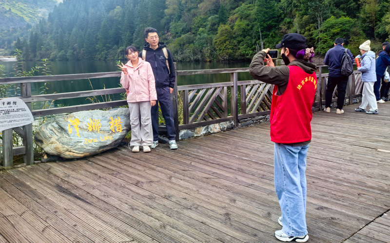 7、溫情瞬間:主動(dòng)幫扶,記錄美好。工作人員熱心為游客留下節(jié)日合影。