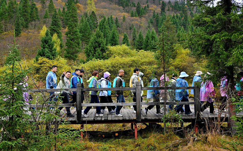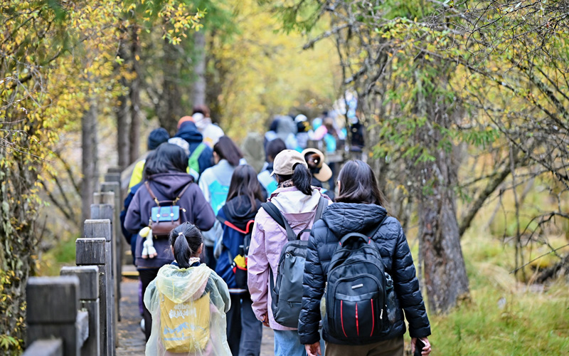 徒步愛好者們一邊用腳步丈量冰川的壯闊,一邊舉著相機定格黑水·達古冰川秋日的“高光瞬間”,每一張照片都是“壁紙級”美景!