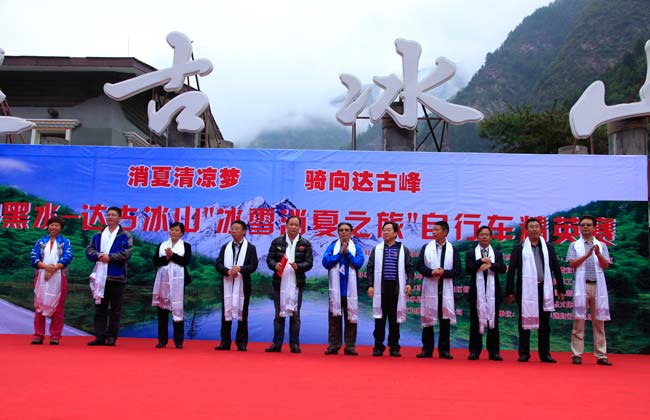 省自行車協會黃特生秘書長、阿壩州人民政府余開勇副秘書長、阿壩州體育局張樹亮局長、中共黑水縣委劉云建書記、中共黑水縣委副書記、縣長何曉兵、達古冰山管理局局長周全福、達古冰山管理局黨委唐華祥書記、達古冰山管理局仁青副局長等相關領導參加了啟動儀式。媒體在報道賽事的同時還將達古冰山的美景展示給了世人——達古冰山遠不止冰山,是集觀光、休閑、度假,包括戶外運動為一體的大型綜合生態旅游目的地,冰川、彩林、日出、云海、湖泊、森林、花卉、草甸、藏寨等極致風光和誘人風情交相輝映,旅游享受是世界級的;告訴世人,到達古冰山游覽不僅可以坐汽車游,也可以徒步游,更可以騎自行車游,這就是全域景區戰略中旅游方式的轉型升級,也是世界旅游發展的新趨勢;告訴世人,達古冰山和九寨溝、黃龍、四姑娘山同為川西高原的四大國際精品旅游區,在九黃機場和即將通航的紅原機場所形成的川西高原新的世界旅游目的地群中,是主干線和核心區之一,同時也是航空線和陸地線市場交融的樞紐集散地。