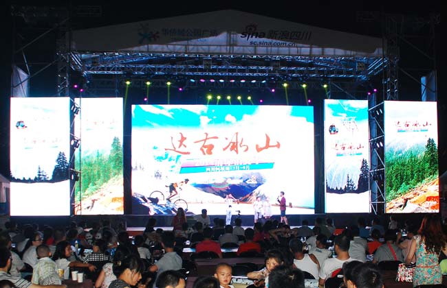 晚會觀眾知識問答互動環節,凡是答對主持人的問題的球迷朋友將獲得達古冰山景區門票2張。來自達古冰山的藏族姑娘、帥小伙們《愛在達古冰山》、《最近的遙遠》、《多彩的哈達》、《高原漢子》等歌舞表演一度掀起了晚會的高潮。