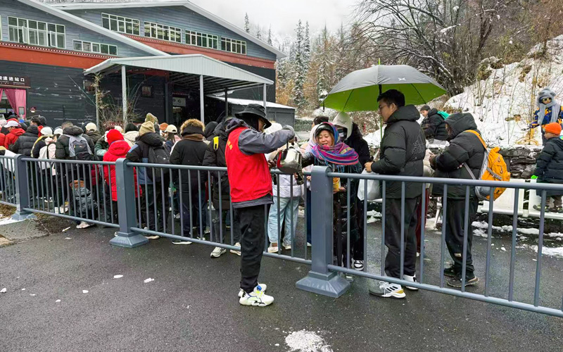 二是當好游覽安全守護員。在高海拔游覽區域、險要路段和天氣多變時節,“紅馬甲”們加強巡查,及時提示安全風險,協助處理游客高原反應等突發狀況,為游客安全保駕護航。