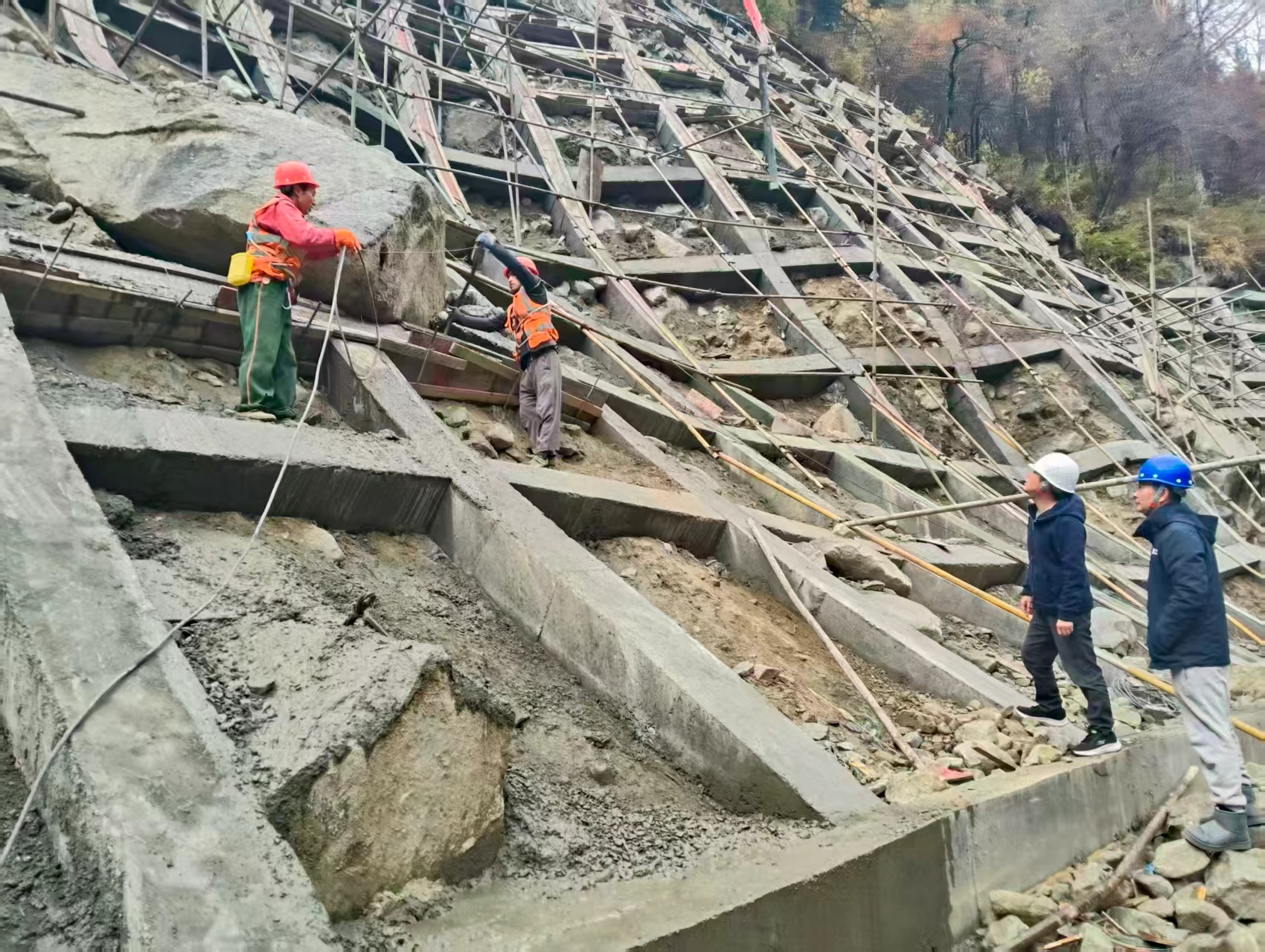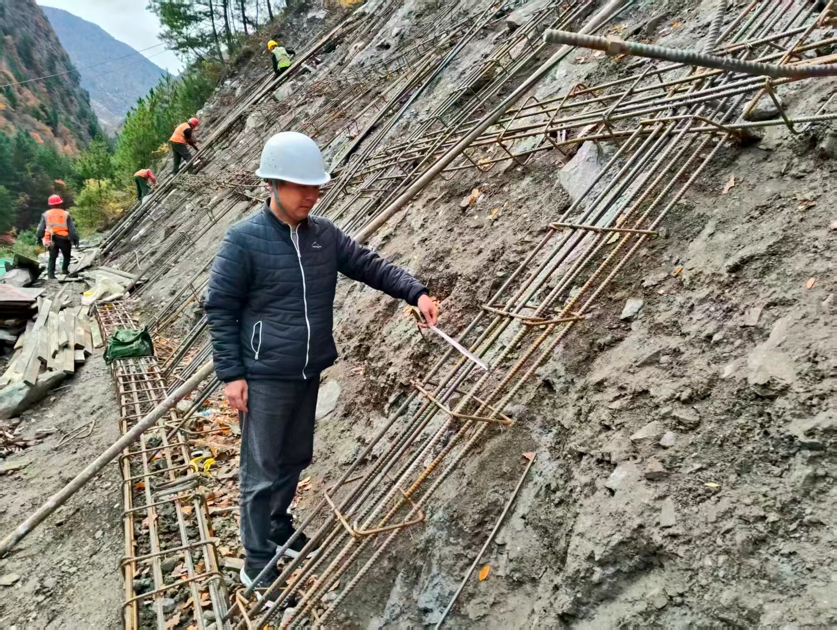 施工過程中,張霖30余天駐場5處施工點蹲點督導(dǎo),關(guān)鍵環(huán)節(jié)全程在崗堅守。景區(qū)旅游廁所維修項目里,聚焦熱水系統(tǒng)升級、給排水設(shè)施完善等核心節(jié)點,緊盯細(xì)節(jié)、嚴(yán)卡標(biāo)準(zhǔn),推動項目提前10余天竣工;2025年地災(zāi)治理項目混凝土澆筑階段,他與同事晝夜輪班值守10余天,全程督導(dǎo)澆筑全流程,細(xì)致排查骨料雜質(zhì)、澆筑密度及均勻度等問題,以夜間堅守筑牢工程質(zhì)量根基;基礎(chǔ)設(shè)施維修期間,他每日徒步2小時往返核心維修區(qū)域,全程督查棧道板鋪設(shè)、螺絲緊固等關(guān)鍵工序,同步推進(jìn)公路沿線多處地災(zāi)隱患點防護(hù)網(wǎng)鋪設(shè)工作,扎實夯實工程建設(shè)安全基礎(chǔ)。