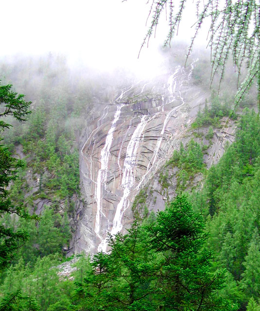當春光明媚、山花爛漫時,踏上冰川公園風景如畫的林蔭小道,漫步在金黃的落葉松林里,伴隨著越來越近的濤聲,與天空中不時飄來的綿綿細雨親吻,別有一番情趣。來到繁花似錦的杜鵑林中,放眼望去,一道飛虹映入眼簾,仿佛“銀河落下千堆雪,瀑布飛瀉萬里煙”。凌云瀑布像一條潔白的哈達,懸掛在山澗懸崖峭壁上。那騰起的片片煙霧,猶如天女散花,百米之內一片白霧茫茫,一縷縷輕煙裊裊升起。迷蒙細霧在陽光的照射下,折射出道道五彩繽紛的彩虹,幻影綽綽,奇妙無窮。使人如入混沌迷蒙的仙境,飄然若仙。